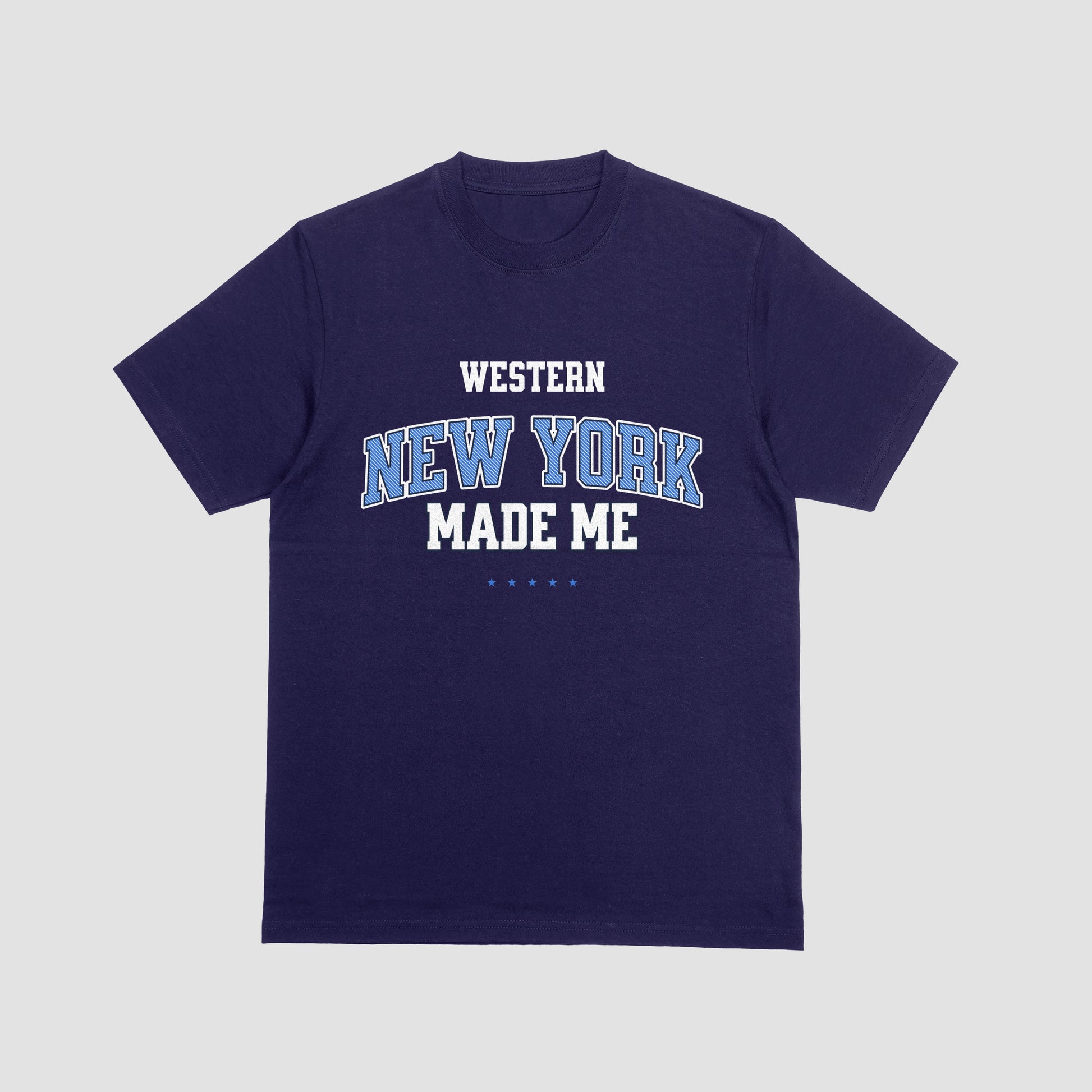 The Western New York Made Me tee is a bold shoutout to the grit, grind, and hometown pride of all points in Western New York. Featuring collegiate-style lettering in blue and white, this hoodie blends sports-inspired energy with streetwear flair, making it the perfect fit for anyone who carries WNY in their DNA.